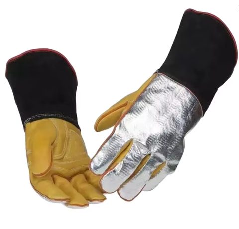 درجة حرارة عالية صناعية بالألمنيوم بطانة من الصوفي مقاومة للحرارة حماية لقفازات أمان للحام
